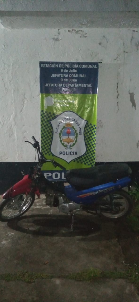 Por otro lado, en horas de la madrugada, personal policial aprehendió en la vía pública a un joven 15 años de edad oriundo de la vecina localidad de Bragado, quien se desplazaba en una motocicleta robada el 3 de febrero en el partido de 9 de Julio. La moto fue recuperada.