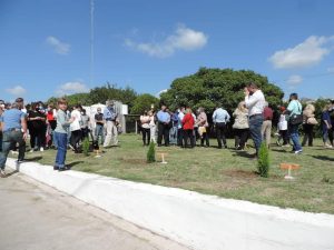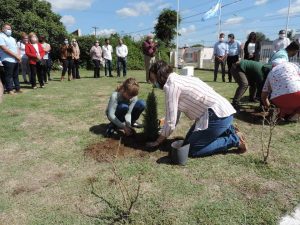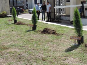 Los arbolitos fueron plantados por hijos e hijas del personal de salud del Hospital, en memoria de las vecinas desaparecidas María Esther Infesta, Mercedes Bogliolo y Mimi Gassman.