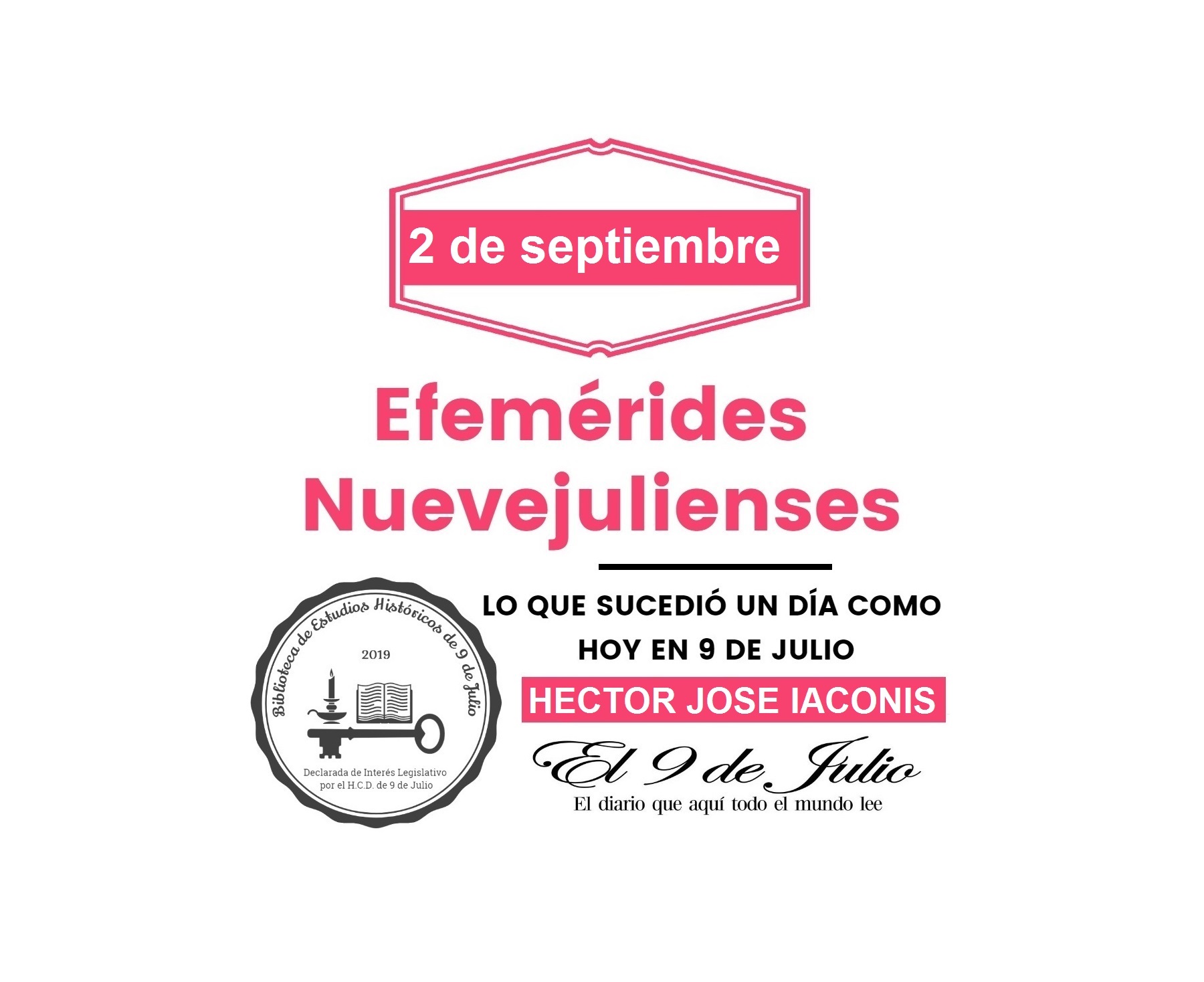- 2 de septiembre de 1986: Fallece monseñor Domingo Cancelleri. Hijo de 9 de Julio, dueño de una sólida formación intelectual, fue docente, publicista y amante de la fotografía. En los orígenes de la Diócesis de 9 de Julio tuvo un destacado desempeño. Por su dedicación al periodismo mereció el Premio “Santa Clara de Asís”. Sus restos descansan en el cementerio de 9 de Julio.