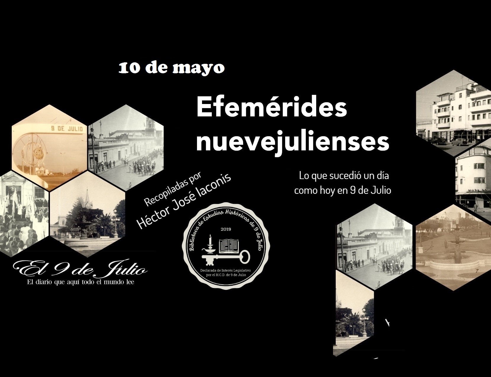 - 10 de mayo de 1895: Fue levantado el Segundo Censo Nacional de Población, en todo el territorio argentino. En el Partido de 9 de Julio, según este censo, vivían 17.100 habitantes; 4.700 en la planta urbana y otros 12.400 habitantes conformaban la población rural.