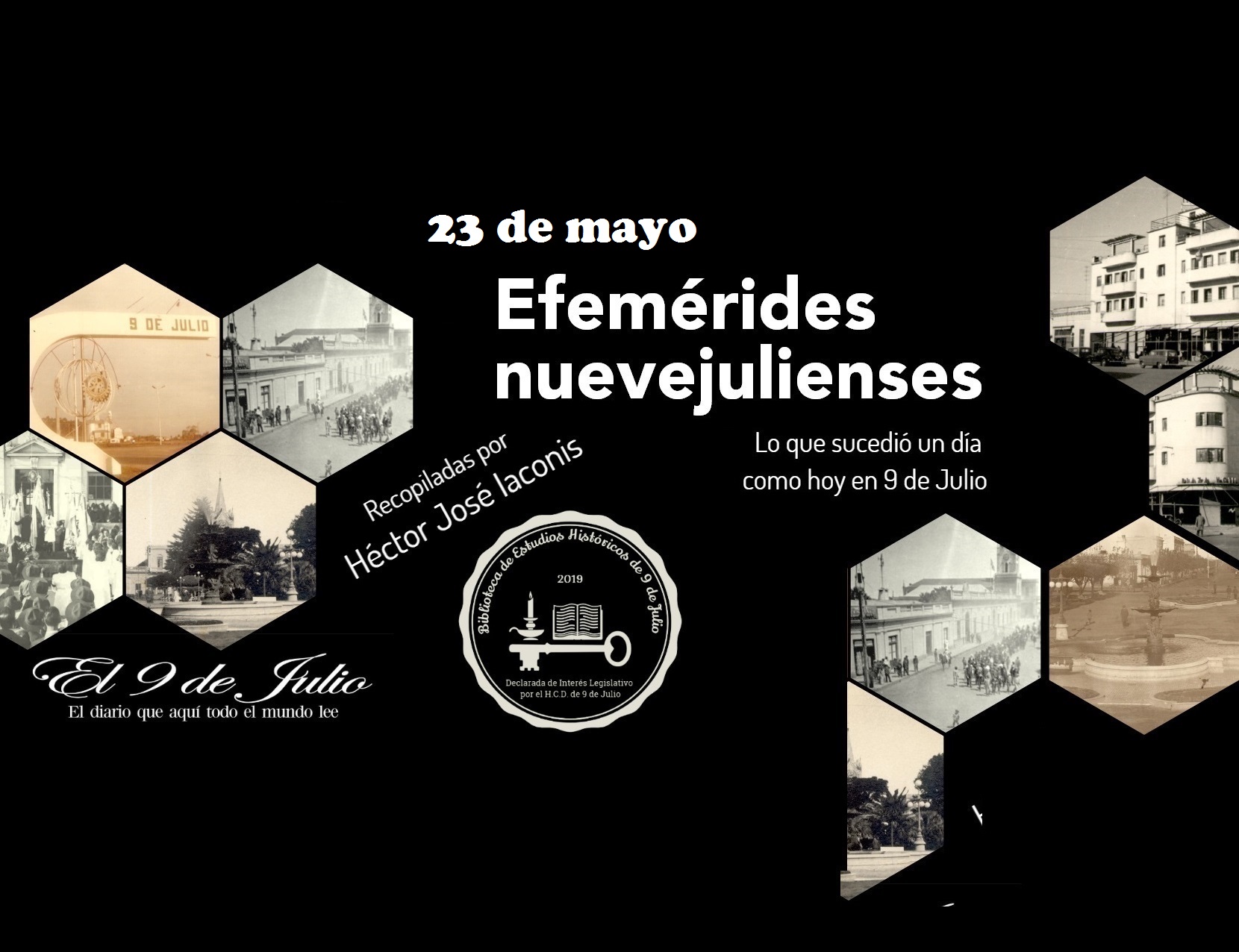 LA CIUDADEfemérides nuevejulienses. Lo que sucedió un día como hoy en 9 de Julio23 mayo 2025 FacebookTwitterWhatsAppEmailImpresiónTelegram 23 de mayo de 1998: Fue entronizada la imagen de María Auxiliadora en Ruta Nacional 5 y Ruta Provincial 65. Se trató de una iniciativa del Círculo de Ex-alumnos de Don Bosco.23 de mayo de 2002: Fue fundado el Centro Apícola “El Chajá”.FacebookTwitterWhatsAppEmailImpresiónTelegram Más noticias 120 años de debates sobre la calidad del agua en 9 de Julio 17 diciembre 2025 Evalúan propuestas académicas, con la UBA 17 diciembre 2025 Programa Puentes: cierre de la diplomatura 17 diciembre 2025 Más de 300 chicos jugaron en el “Baby” de San Martín 17 diciembre 2025 Ascenso: 18 de Octubre se quedó con la Primera Etapa 17 diciembre 2025 Escuela de Danzas Lucía/Inés: El Cascanueces, «una función increíble» 16 diciembre 2025