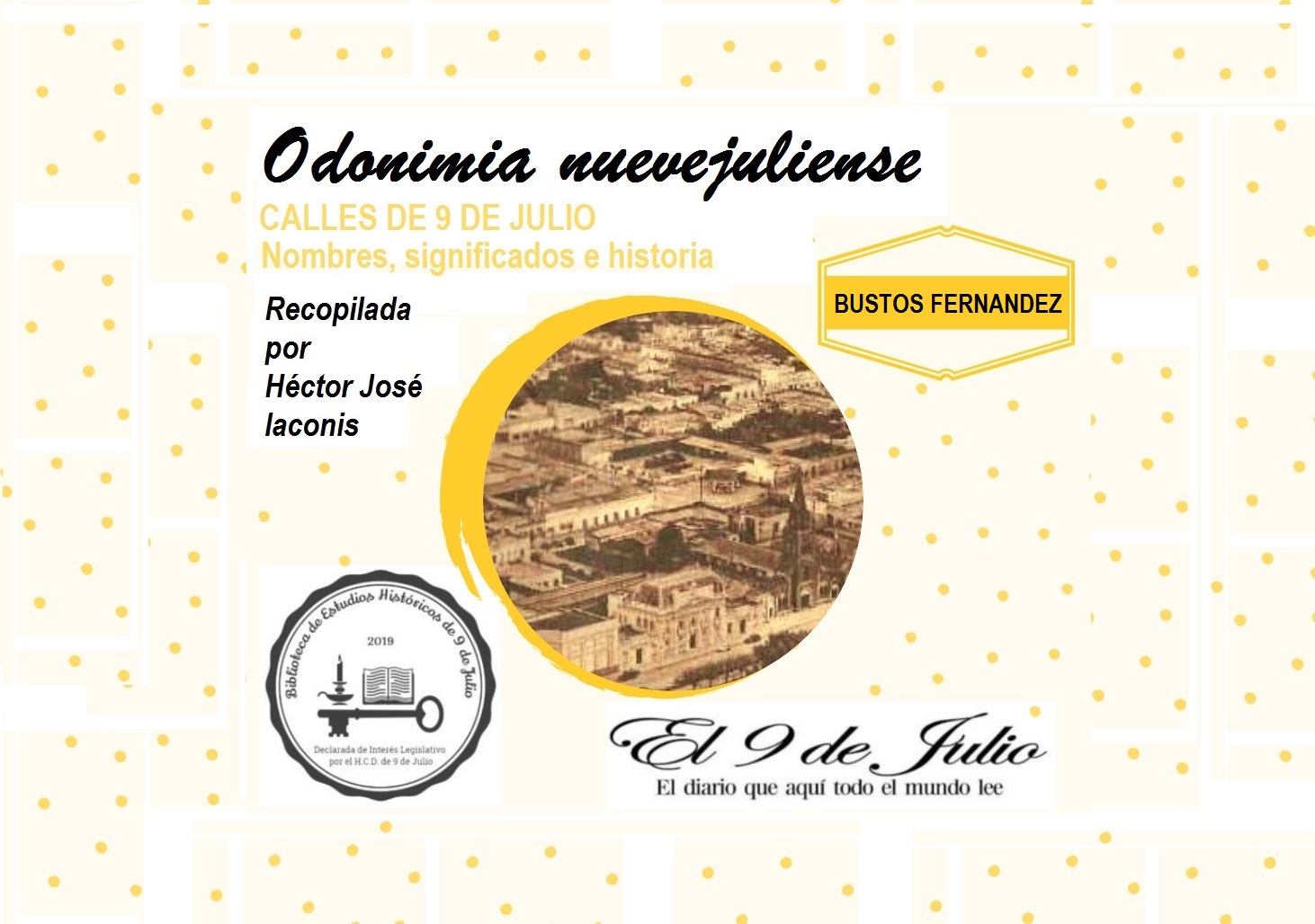 El 27 de julio de 2007, el Concejo Deliberante de 9 de Julio impuso el nombre de Doctor Héctor Bustos Fernández “al Pasaje que se encuentra entre la Avenida 25 de Mayo y la calle Hipólito Yrigoyen con delimitación de las calles JoséHernández y Pueyrredón”. La ordenanza que formaliza este acto es la nº 4553.