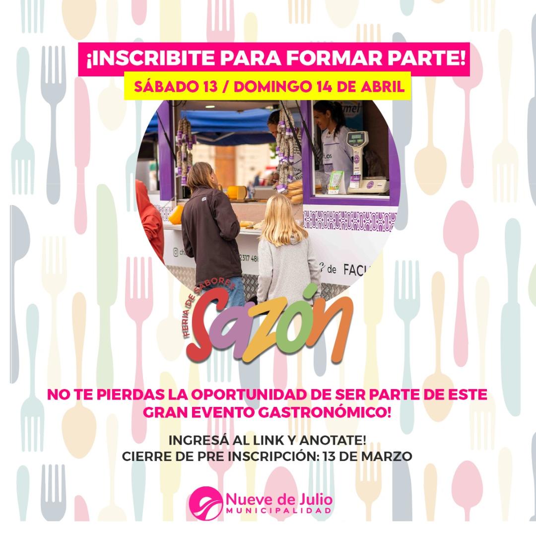 Los interesados en sumarse para presentar sus productos ya pueden inscribirse para formar parte del festival de sabores más grande del distrito de 9 de Julio, ingresando a