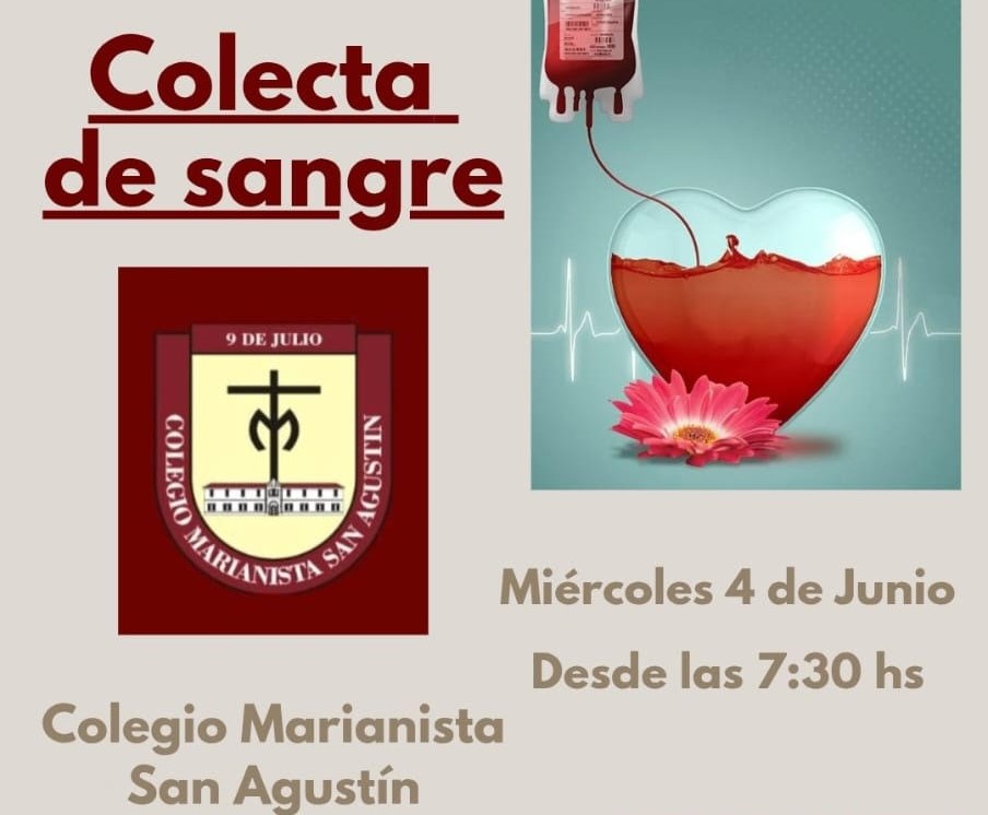 Está confirmada la próxima colecta externa de sangre por parte del Servicio de Hemoterapia del Hospital Julio de Vedia a realizarse el miércoles 4 de junio a partir de las 7.30 horas en el Colegio Marianista San Agustín.