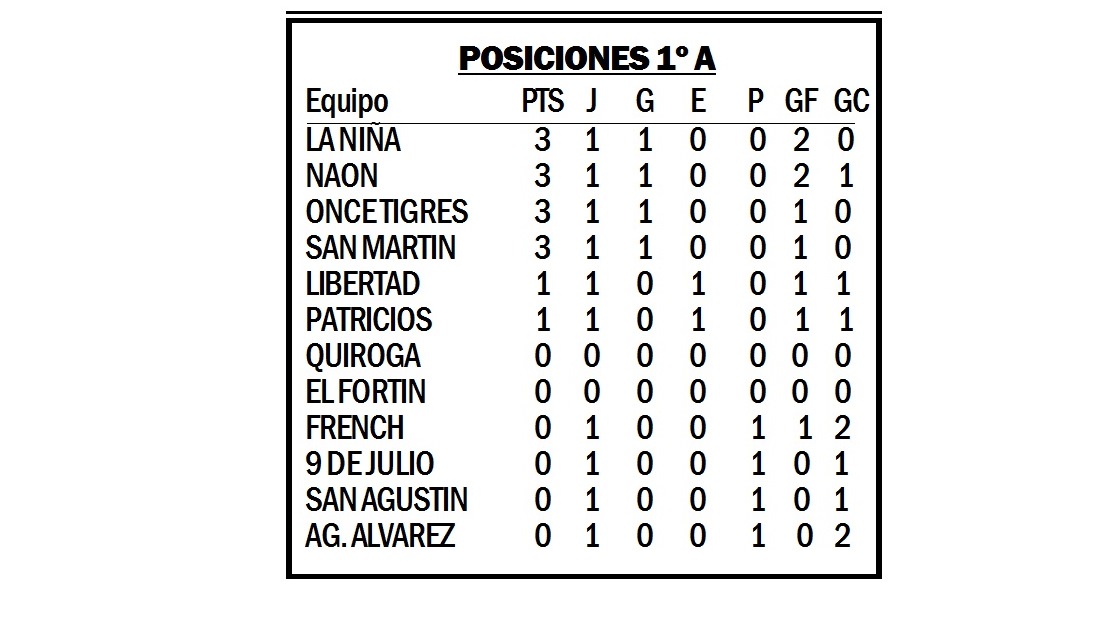El domingo 5 se completaría la fecha con Atlético La Niña – Libertad, Atlético Patricios – Once Tigres, Atlético Naón – El Fortín y Agustín Alvarez – Quiroga.