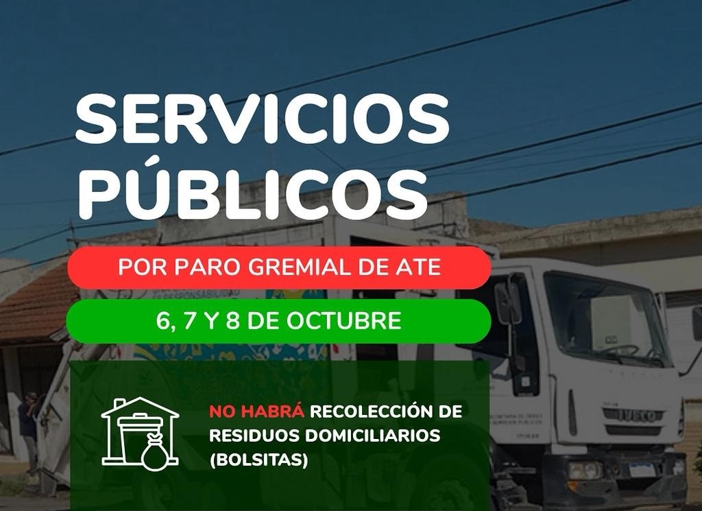 La Municipalidad de 9 de Julio informó que ante la medida de fuerza tomada por la Asociación de Trabajadores del Estado (ATE), la recolección de todos los residuos se verá restringida durante los días lunes 6, martes 7 y y miércoles 8 de octubre.