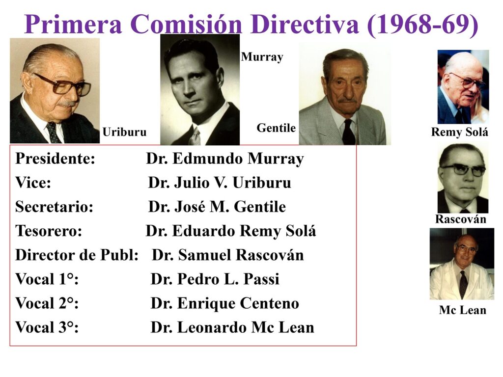 El 21 de noviembre de 1967 se fundó la Sociedad Argentina de Patología Mamaria, bajo la presidencia del Dr. Edmundo Murray, con el Dr. Julio V. Uriburu como vicepresidente, el Dr. José M. Gentile como secretario y el Dr. Eduardo Remy Solá como tesorero. A ellos se sumaban como vocales y colaboradores los doctores Pedro L. Passi, Enrique Centeno, Leonardo Mc Lean y Samuel Rascován, entre otros. Esta comisión directiva inicial sentó las bases de una entidad destinada a dar forma académica y científica a la naciente disciplina.