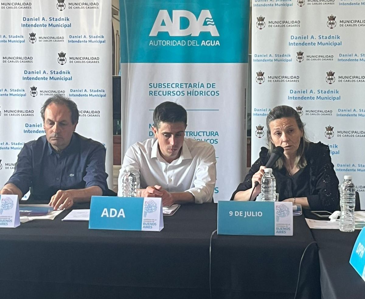 Participan del encuentro el presidente de la Autoridad del Agua (ADA), Damián Costamagna; el subsecretario de Recursos Hídricos bonaerense, Néstor Álvarez; María José Gentile (Intendente de Nueve de Julio y vicepresidente del Comité de Cuenca Subregión A3), y los intendentes Sergio Barenghi (Bragado), Luis Pugnaloni (H. Yrigoyen) Salvador Serenal (Lincoln) Francisco Recoulat (Trenque Lauquen), entre otros representantes municipales de la región.