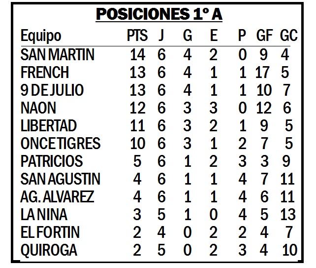 El equipo de Naón es uno de los invictos del torneo, junto a San Martín. Sin embargo, como tiene tres empates y tres triunfos se ubica en cuarto lugar en la tabla. El CAN superó de visitante 3 a 1 a Patricios.