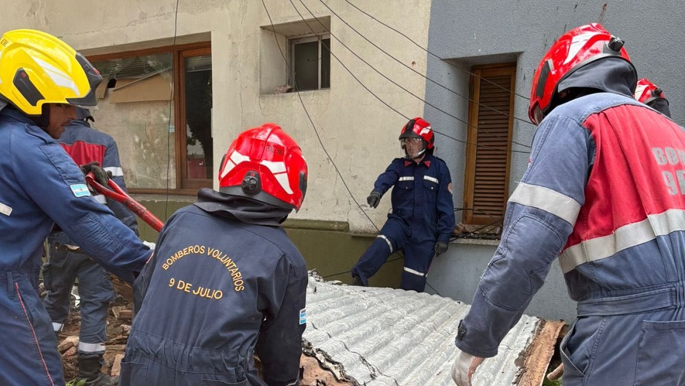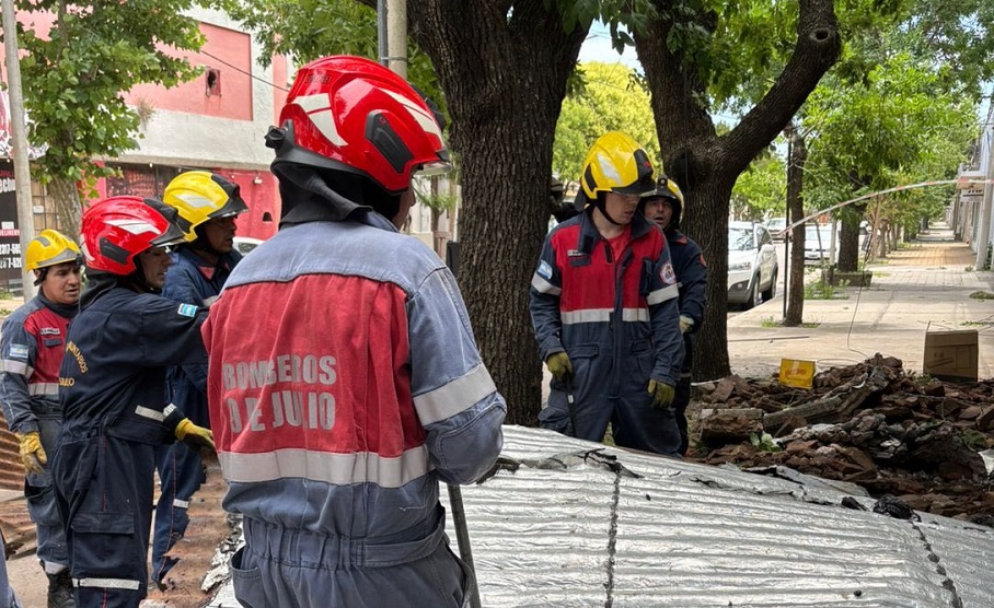 El domingo al mediodía el Municipio le pidió colaboración a Bomberos para sacar los restos que habían quedado en el techo volado en la esquina de Santa Fe y Mitre. Se limpió esa parte.