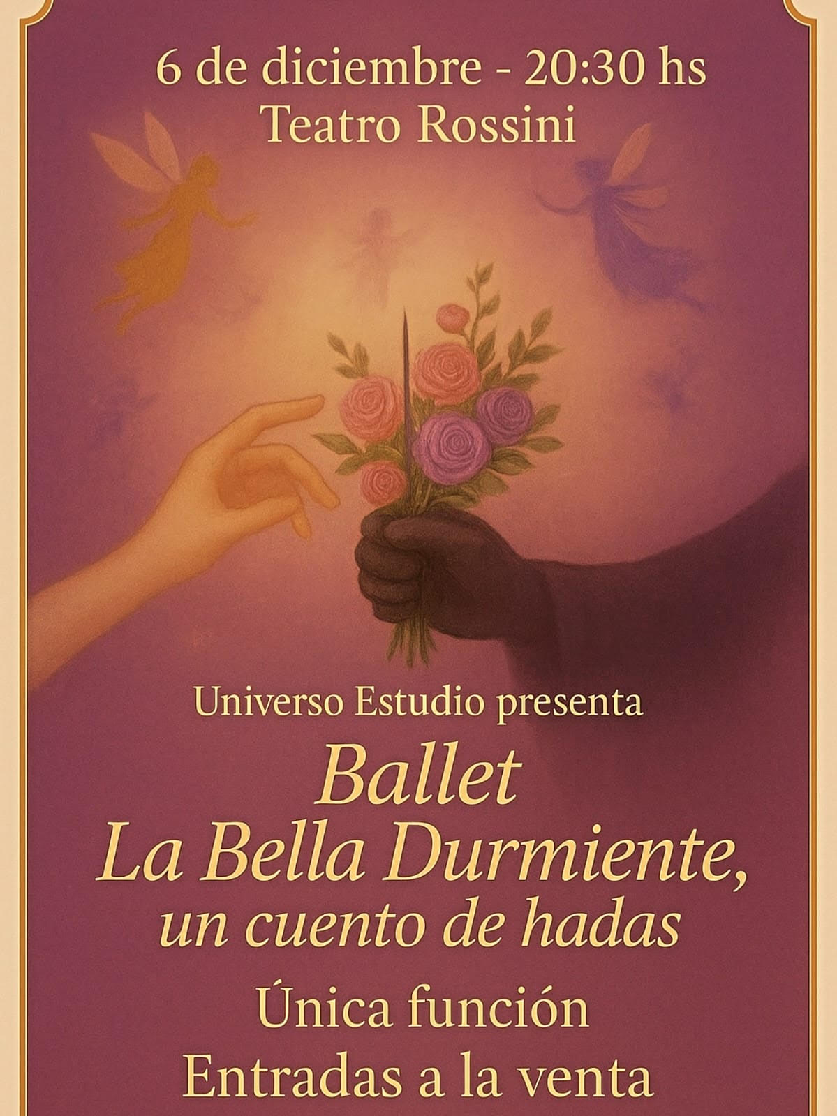 El sábado 6 de diciembre de 2025, a las 20.30 horas, el Teatro Rossini se vestirá de gala para recibir a “La Bella Durmiente, un cuento de hadas”, la nueva producción de Universo Ballet, bajo la dirección y coreografía de Vanesa Castiglioni.