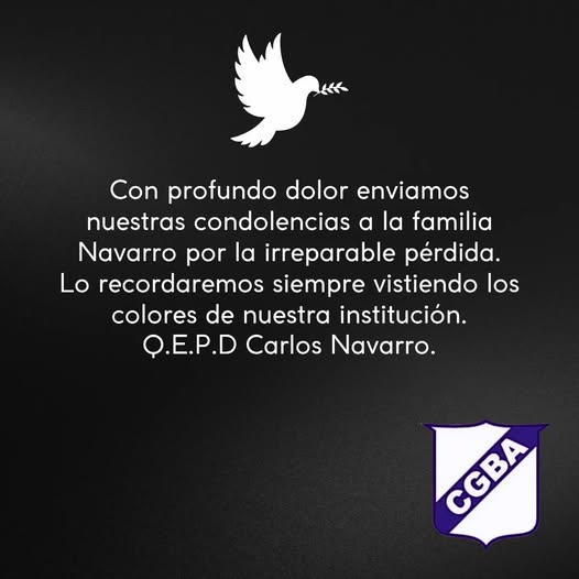 Desde el Club Compañía General Buenos Aires de Patricios expresaron «con profundo dolor enviamos nuestras condolencias a la familia Navarro por la irreparable pérdida. Lo recordaremos siempre vistiendo los colores de nuestra institución.