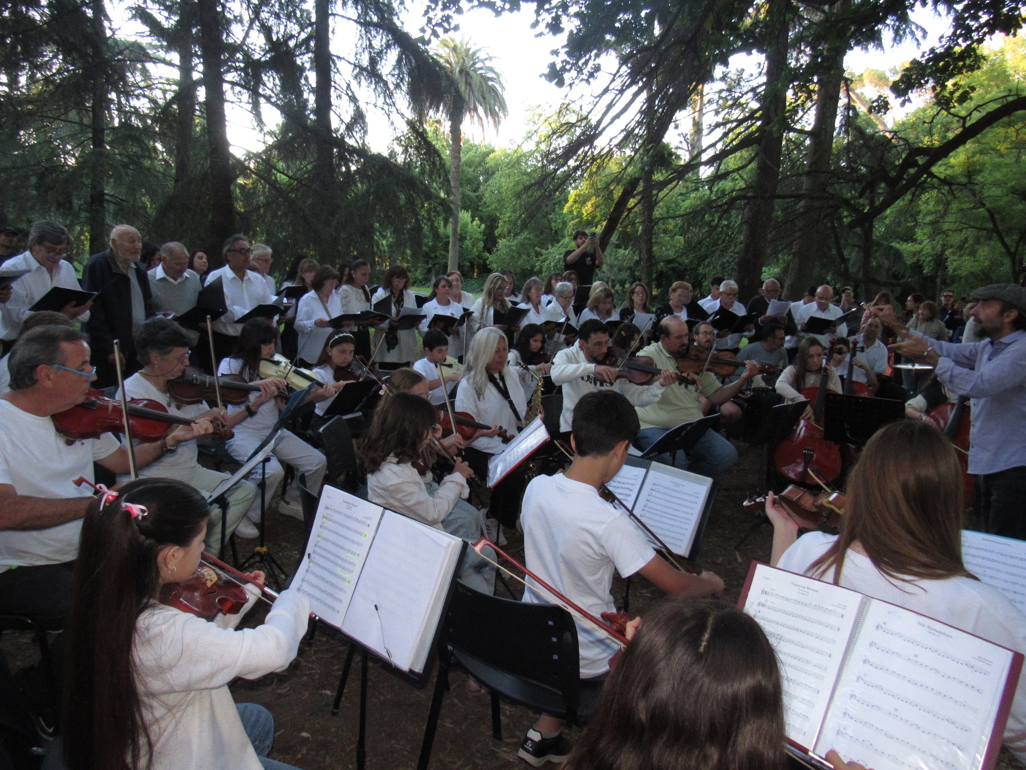 A la imponente interpretación de “Carmina Burana”, prevista inicialmente se le sumaron dos canciones como “Himno a la Alegría” y “Ave Verum”, recibiendo los artistas cálidos aplausos del numeroso público bajo los árboles, en el atardecer nuevejuliense.
