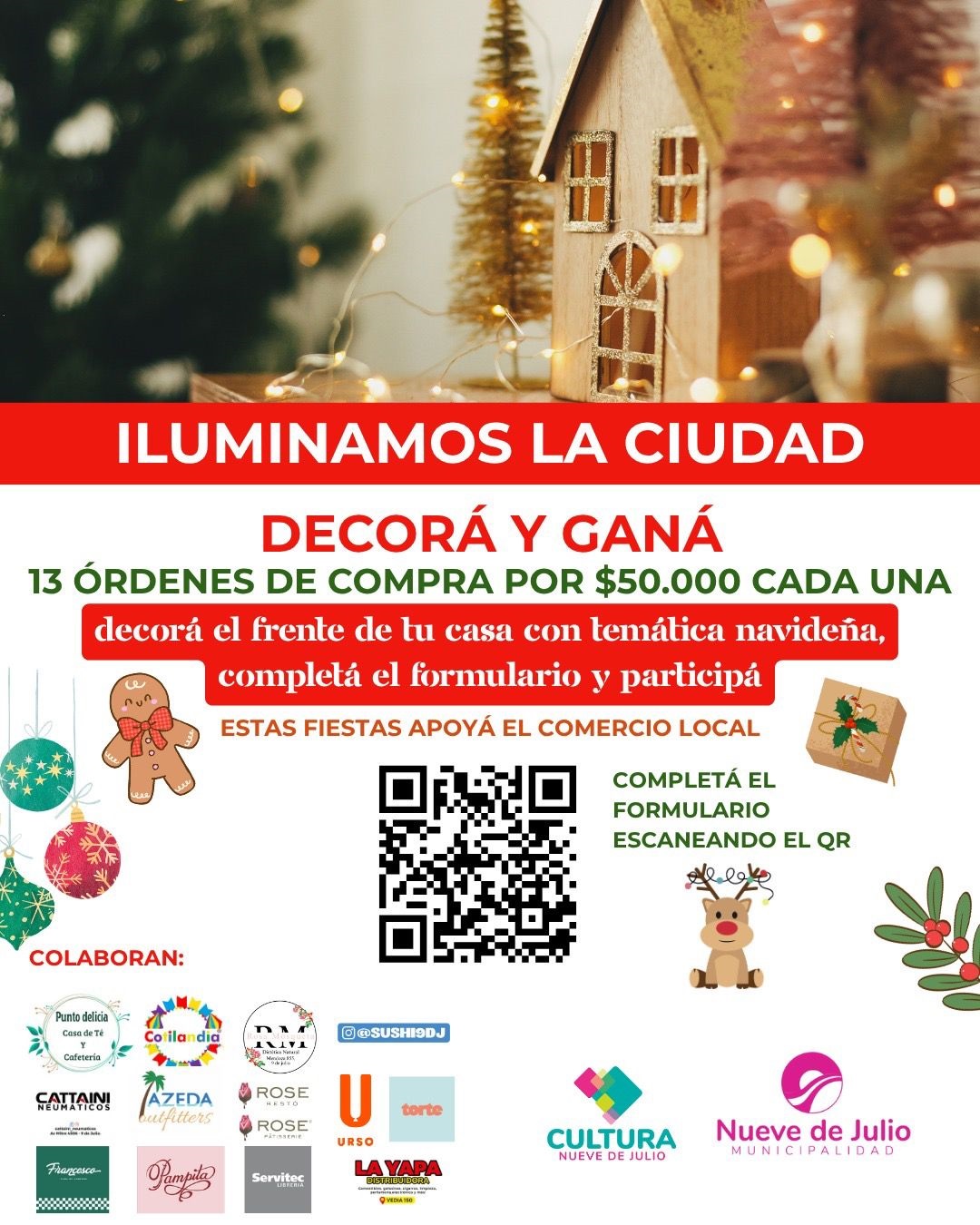 La Municipalidad de 9 de Julio, a través de la Dirección General de Cultura y con el acompañamiento de comercios locales, invita por segundo año consecutivo a todos los vecinos a sumarse a la propuesta “Decoremos Nuestra Ciudad”, una iniciativa que busca que cada frente, cada esquina y cada barrio se vista de fiesta, iluminando y llenando de