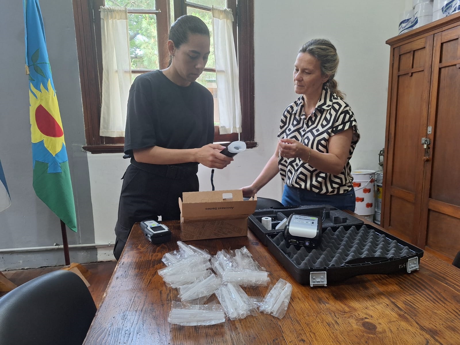 Tanto la jefa comunal como la coordinadora de Tránsito del municipio, Daiana Molina, destacaron que el alómetro es un dispositivo electrónico que se utiliza en los controles de alcoholemia para hacer una detección preliminar rápida del alcohol en el aliento de un conductor.