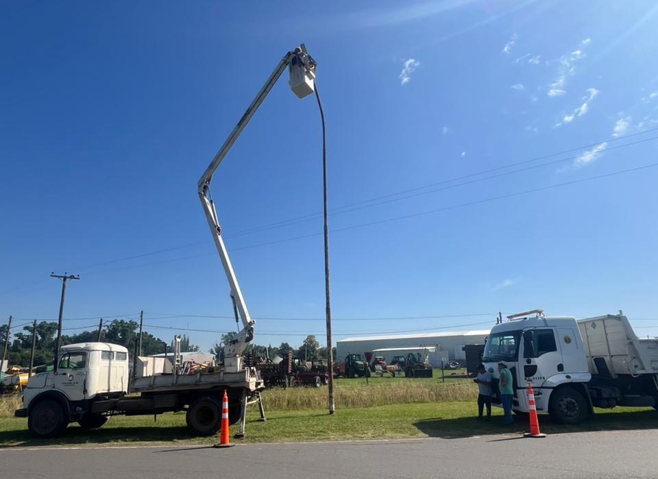 Seguridad vial: colocan luminarias en rutas 5 y 65, a la altura de 9 de Julio