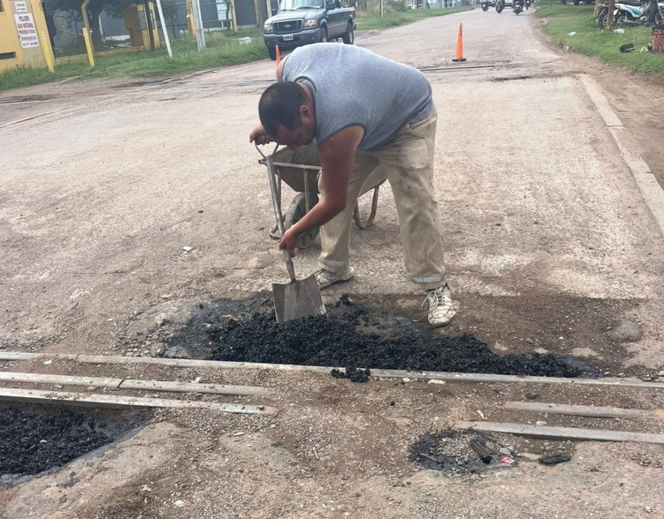 La Municipalidad de Nueve de Julio, a través de la secretaría de Obras y Servicios Públicos, ejecuta obras de bacheo en distintas zonas de la planta urbana, tal el caso del cruce a nivel de las vías sobre calle Mendoza, entre Gral. Paz y Rastreador Fournier.