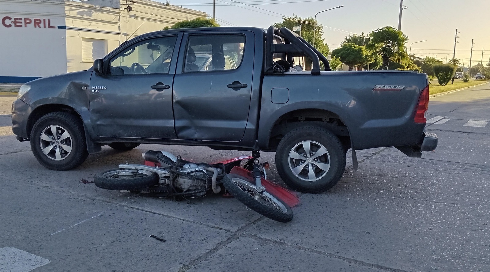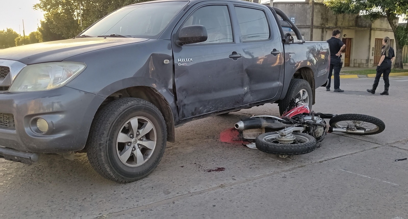 Por causas que se tratan de establecer colisionaron una moto Honda que iba por Urquiza y una Toyota Hilux que circulaba por calle Libertad.