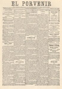 “El Porvenir” se identificaba como un “periódico literario, comercial y noticioso”, lo cual da cuenta de una cierta diversificación en cuanto a los contenidos ofrecidos. A diferencia de “La Defensa”, cuyo origen estaba claramente ligado a una coyuntura política específica, “El Porvenir” buscaba presentarse como un medio más plural, abierto a distintas voces y temáticas. Su frecuencia de aparición era bisemanal, los días jueves y domingos, y el formato de la página era de 40 por 58 centímetros. La diagramación, a cinco columnas de 7 centímetros (equivalentes a 15,51 cíceros), respondía a los mismos estándares que habían caracterizado a las publicaciones anteriores. La tipografía de los textos oscilaba generalmente entre los cuerpos 6 y 9, lo cual facilitaba la lectura y permitía incluir una cantidad considerable de información en cada página.