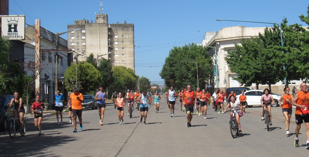 El recorrido tiene una extensión de 8,5 kilómetros. Se fueron sumando en distintas partes del recorrido, corriendo, trotando, caminando y también en bicicleta.