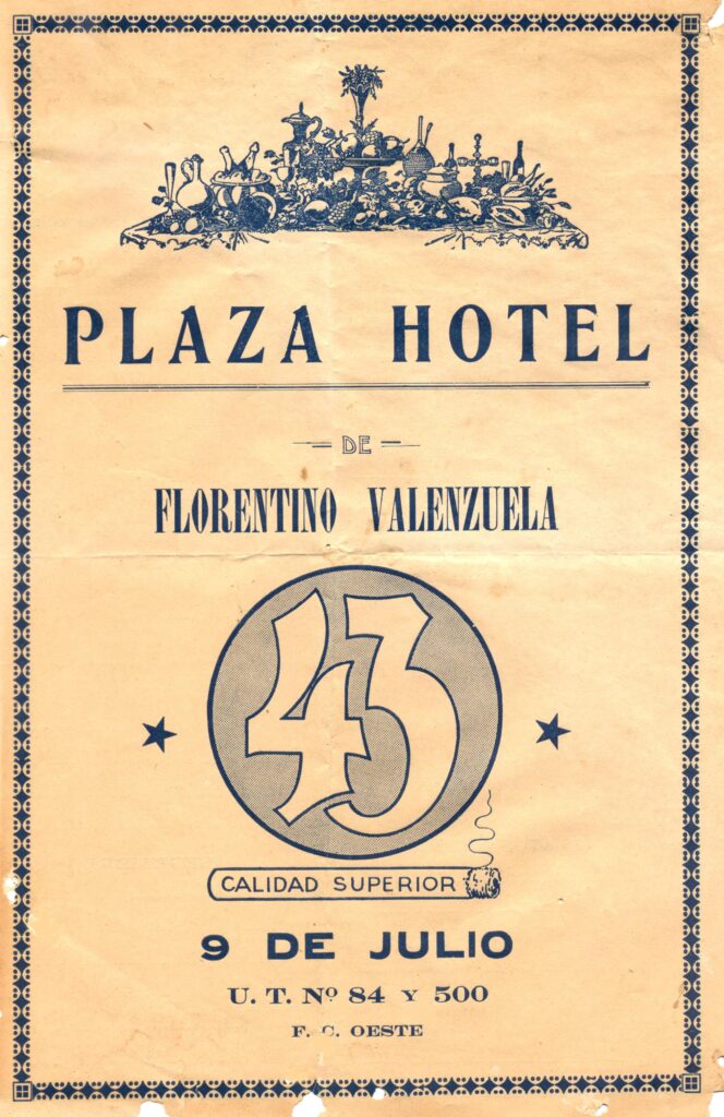 Allende su gestión pública, Florentino Valenzuela realizó como particular una de las obras edilicias privadas más significativas de 9 de Julio en el siglo XX: la construcción del Plaza Hotel. En febrero de 1933, Florentino Valenzuela, adquirió a Ernesto Poggi las parcelas de Bartolomé Mitre e Independencia (hoy, Hipólito Yrigoyen), donde había funcionado años ha el Hotel “Cruz de Malta”. A partir de entonces, el nuevo propietario comenzó a proyectar la construcción de un hotel que respondiese a las exigencias de su tiempo.
