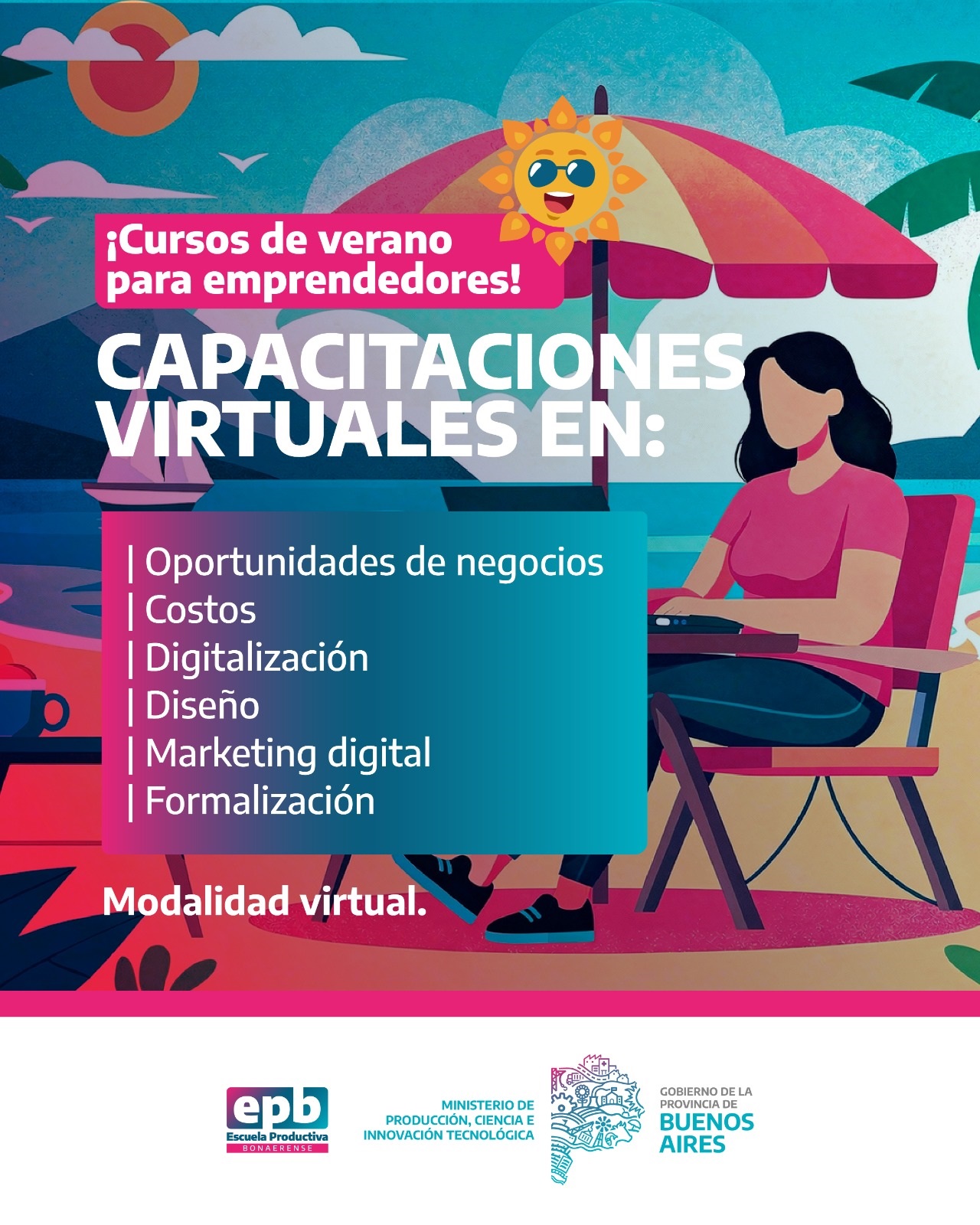 La subsecretaría de Producción de la Municipalidad de 9 de Julio invita a emprendedores y emprendedoras de la ciudad a participar de una nueva propuesta de cursos de verano, pensada para acompañar el crecimiento y fortalecimiento de proyectos productivos en sus distintas etapas.