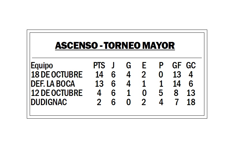 Bien merecido el campeonato de 18 de Octubre, el DT Marcelo García logra otro ascenso como en su momento lo hizo con 12 de Ocubre. Hacía 30 años que 18 de Octubre había logrado el Ascenso, en 1996, jugando en Primera A en 1997.