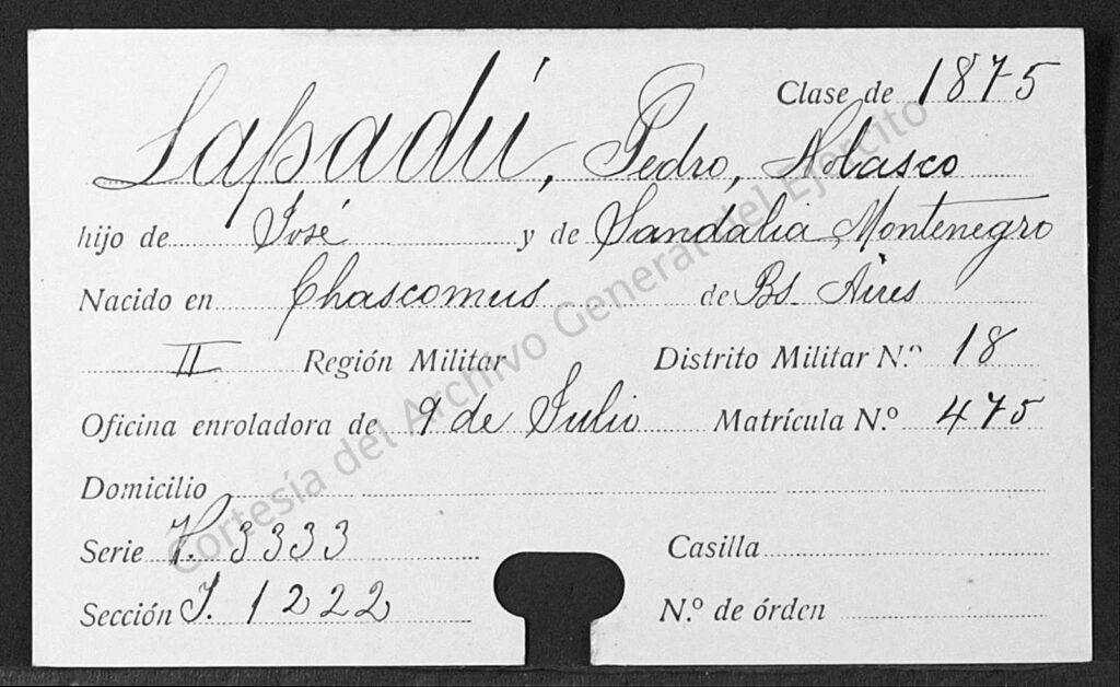 La configuración familiar de Pedro debió ser compleja. Hacia 1895, cuando fue censado en el marco del Segundo Censo Nacional de la República Argentina, su núcleo doméstico había experimentado transformaciones significativas. Vivía entonces con su madre, quien ejercía como modista, y sus hermanas. En el mismo hogar aparece registrado Francisco Longo, de nacionalidad italiana y profesión ajustador mecánico, su padrastro.