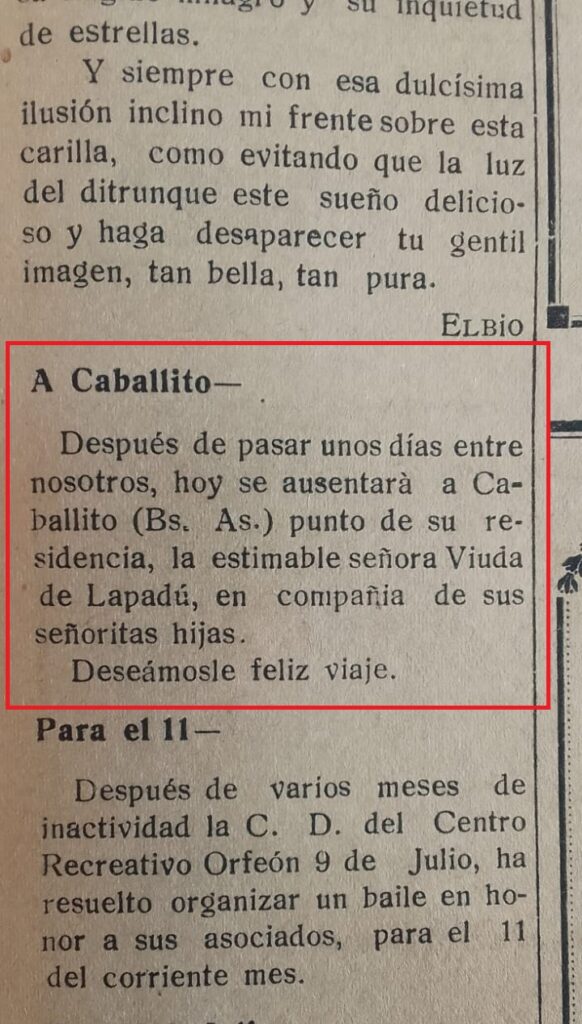 Su biografía nos recuerda que la historia de 9 de Julio no se teje únicamente con grandes acontecimientos políticos o económicos, sino también con las trayectorias individuales de hombres y mujeres que, como Lapadú, cumplieron con dedicación y honestidad sus responsabilidades cotidianas, ganándose el reconocimiento de sus coetáneos.