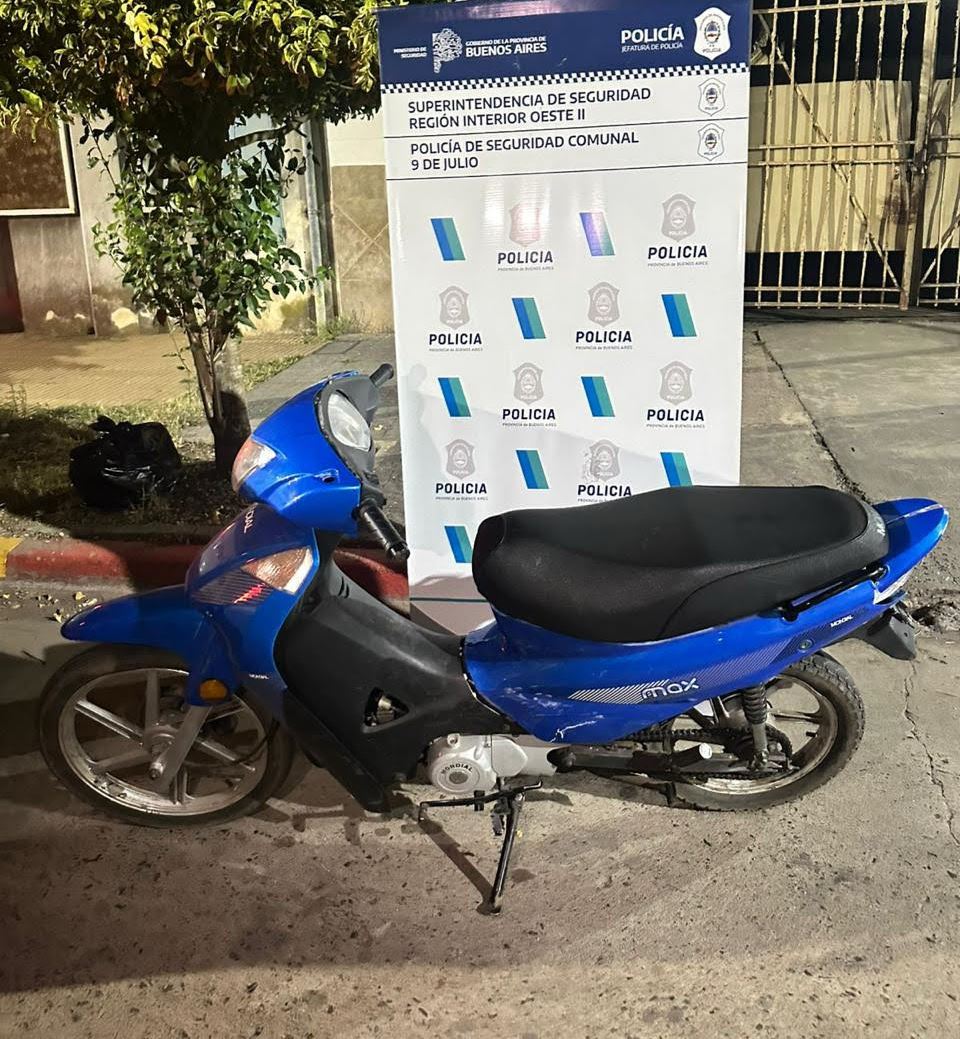 En la madrugada del día jueves 29 de enero, en calle Freyre y Santa Fe, la Policía Comunal de 9 de Julio procedió al Secuestro de ciclomotor marca Mondial de 110 CC que era conducido por un menor de edad quien junto a su hermano habían producido colisión con vehículo estacionado en lugar, sin lesiones de consideración para conductor ni acompañante.