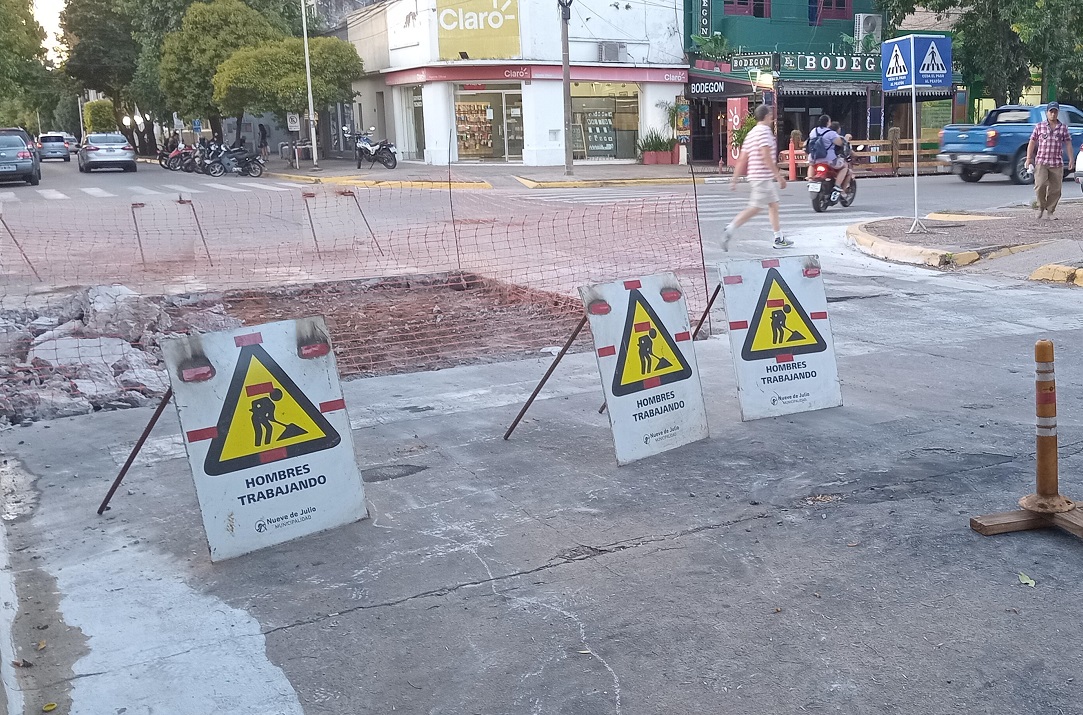 En distintos sectores de la ciudad de 9 de Julio, la Municipalidad se encuentra ejecutan obras de arreglos del pavimento que se fue deteriorando. Uno de los casos es la intersección de calle Robbio y Avenida Mitre.