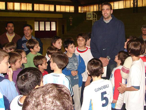 Los niños de las divisiones inferiores del básquet de Atlético «9 de Julio» ovacionaron de manera especial a su ídolo, a quien admiran y respetan por su talento.