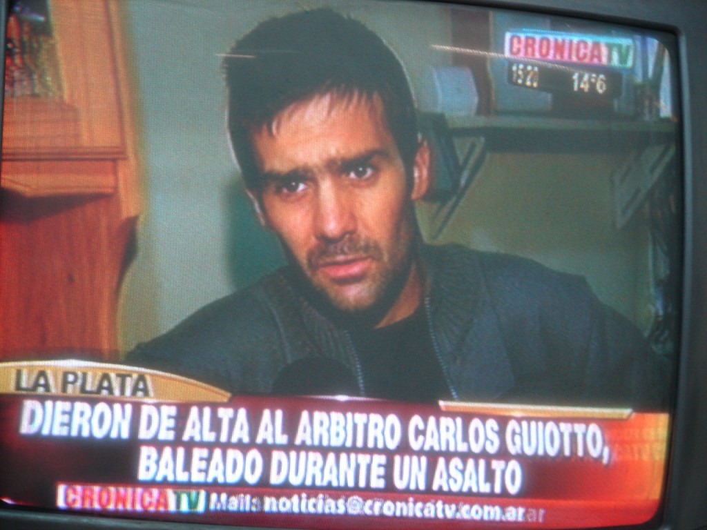 El nuevejuliense Carlos Tomás Guiotto fue dado de alta del Hospital San Martín de La Plata hoy a las 12 y 30 horas y se recupera en su domicilio de la capital bonaerense, después de haber sido baleado en un asalto el 11 de agosto.