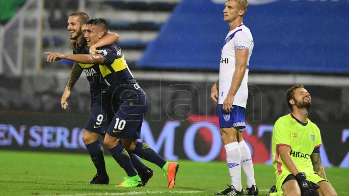 El puntero Boca derrotó con total autoridad a Vélez Sarsfield por 3 a 1 en la lluviosa jornada de Liniers, solidificando así su liderazgo en el campeonato de primera división al cabo de la 19na. fecha.