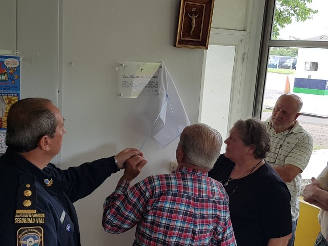 El martes 17 de octubre en la sede de la Policía Vial (Caminera) de Bragado, ante la presencia de autoridades policiales, el Capellán de la repartición, familiares y amigos, se procedió al descubrimiento de una placa recordatoria a quien fuera el Capitán Adalberto Arruiz. El padre y la esposa del homenajeado fueron los encargados de descubrir la placa.