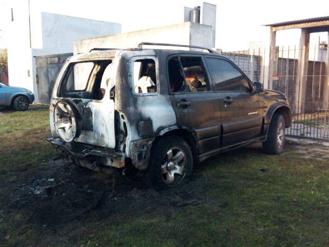 Por causas que se tratan de establecer tomó fuego una Chevrolet Vitara. El fuego afectó la parte trasera del vehículo, el interior y la rueda de auxilio.