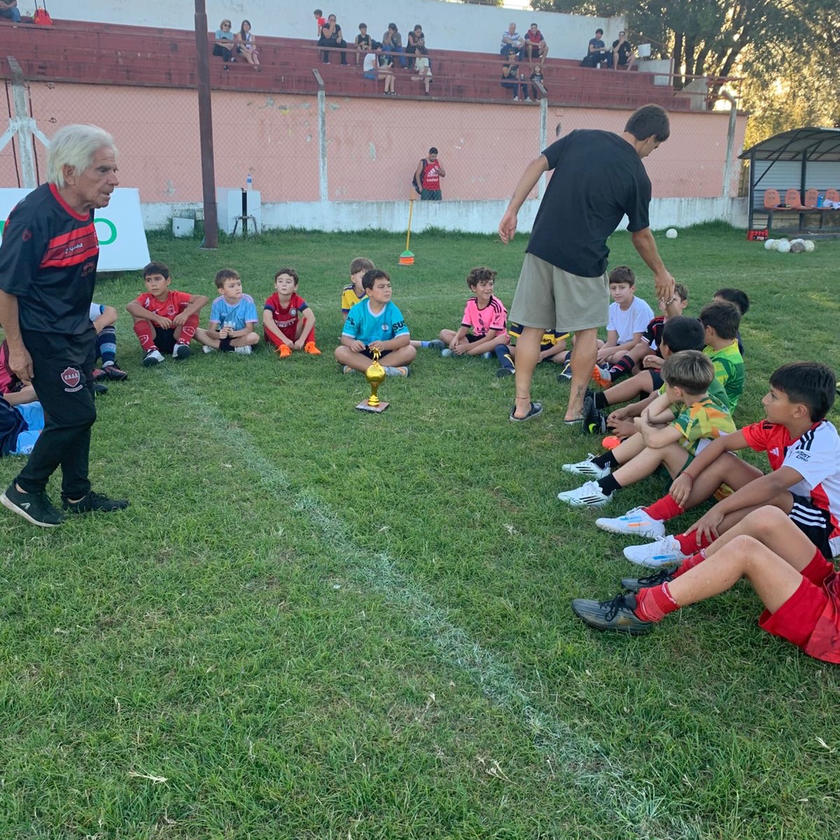 Se tomó el tiempo de compartir un rato con los profes, tomar unos mates y saludar a los chicos, dejando un mensaje «enorme» para todos los que hoy sueñan con seguir ese camino.